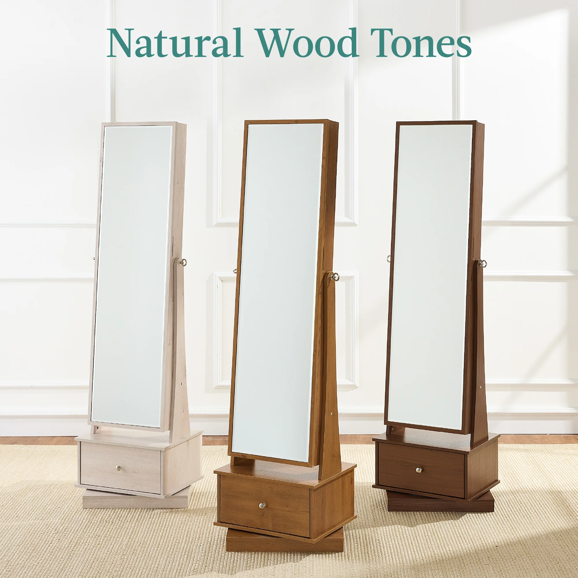 FULL-LENGTH BEVELED MIRROR: Features a built-in mirror on the cabinet door equipped with a magnetic latch for added security