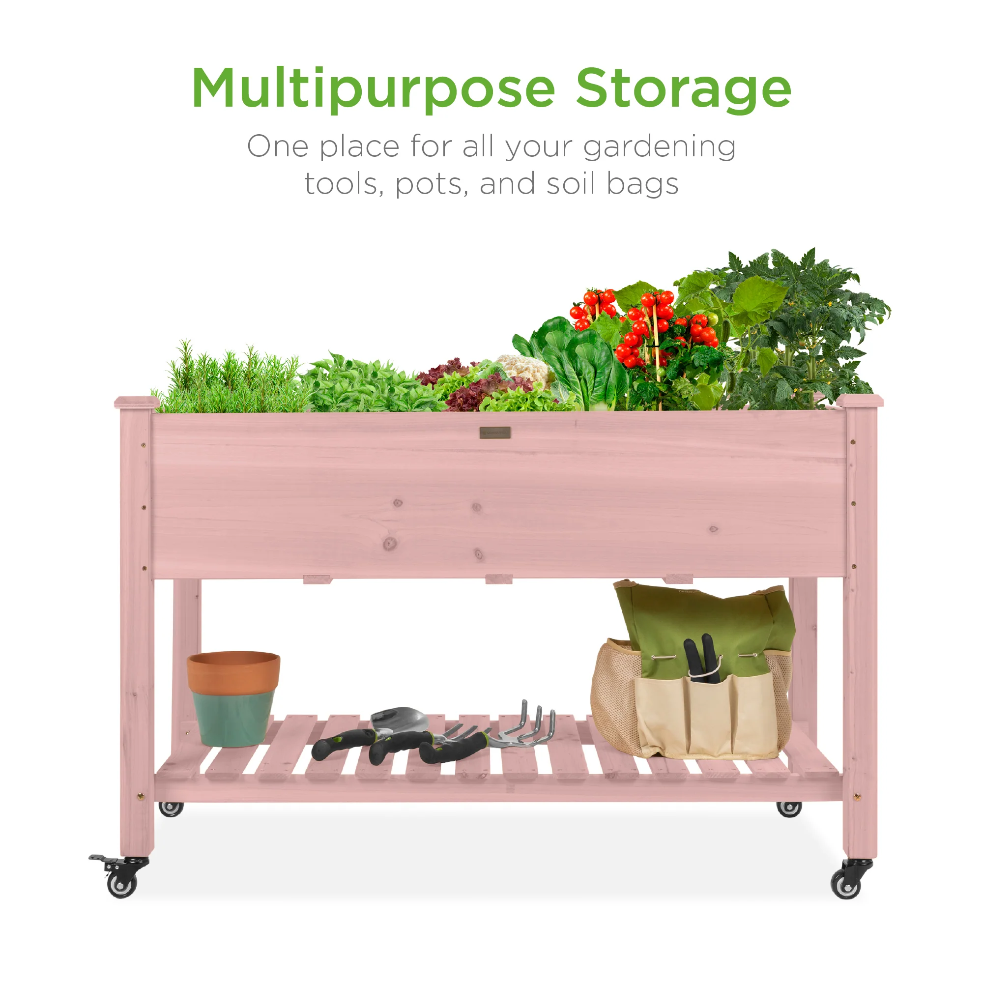 MAXIMIZE SPACE: Get the most out of your planting and storage space thanks to the large bed with a built-in storage shelf for your favorite garden accessories
