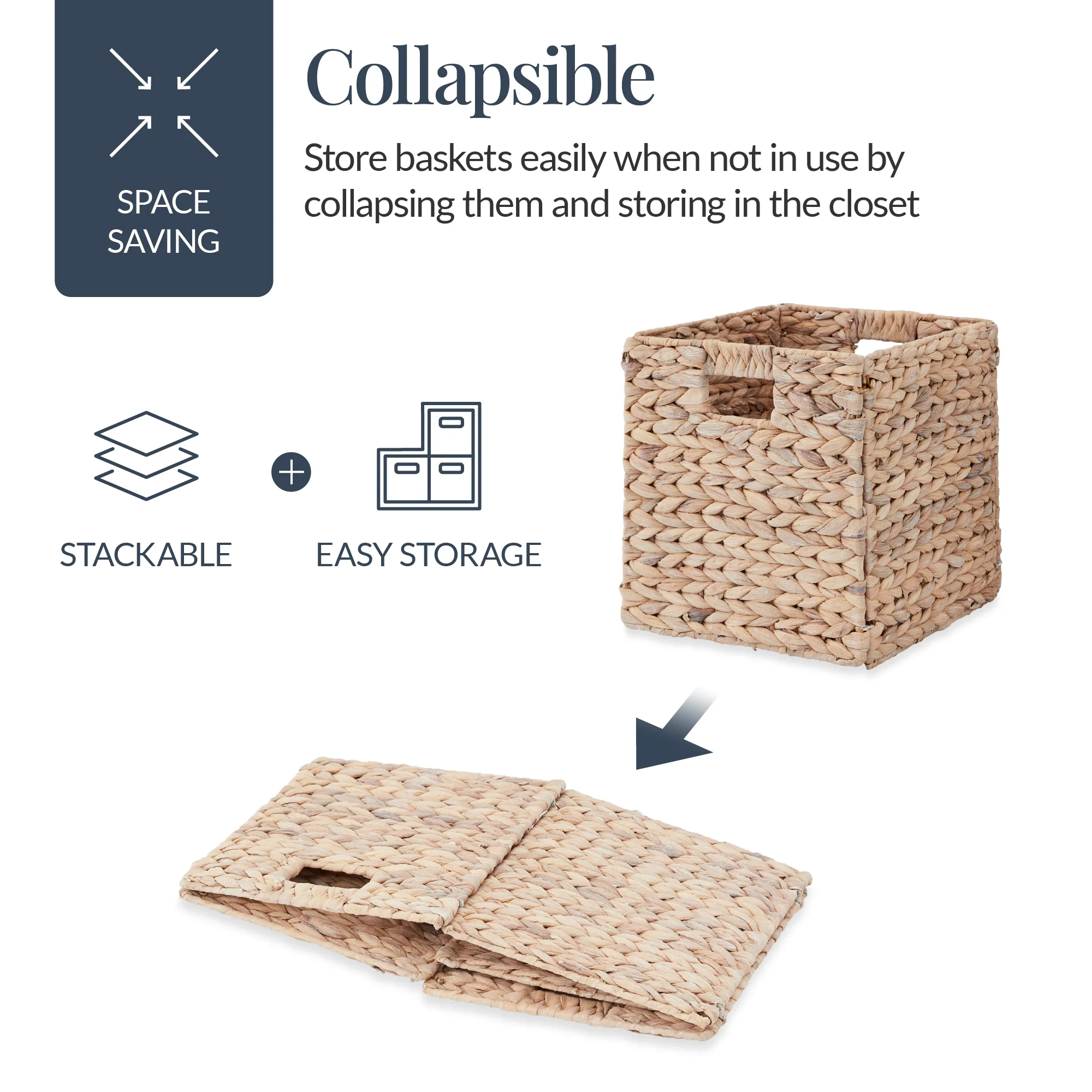 COMPACT DESIGN: A lightweight design with cut out handles makes these baskets easy to carry from room to room, and its collapsible design makes them easy to store when not in use