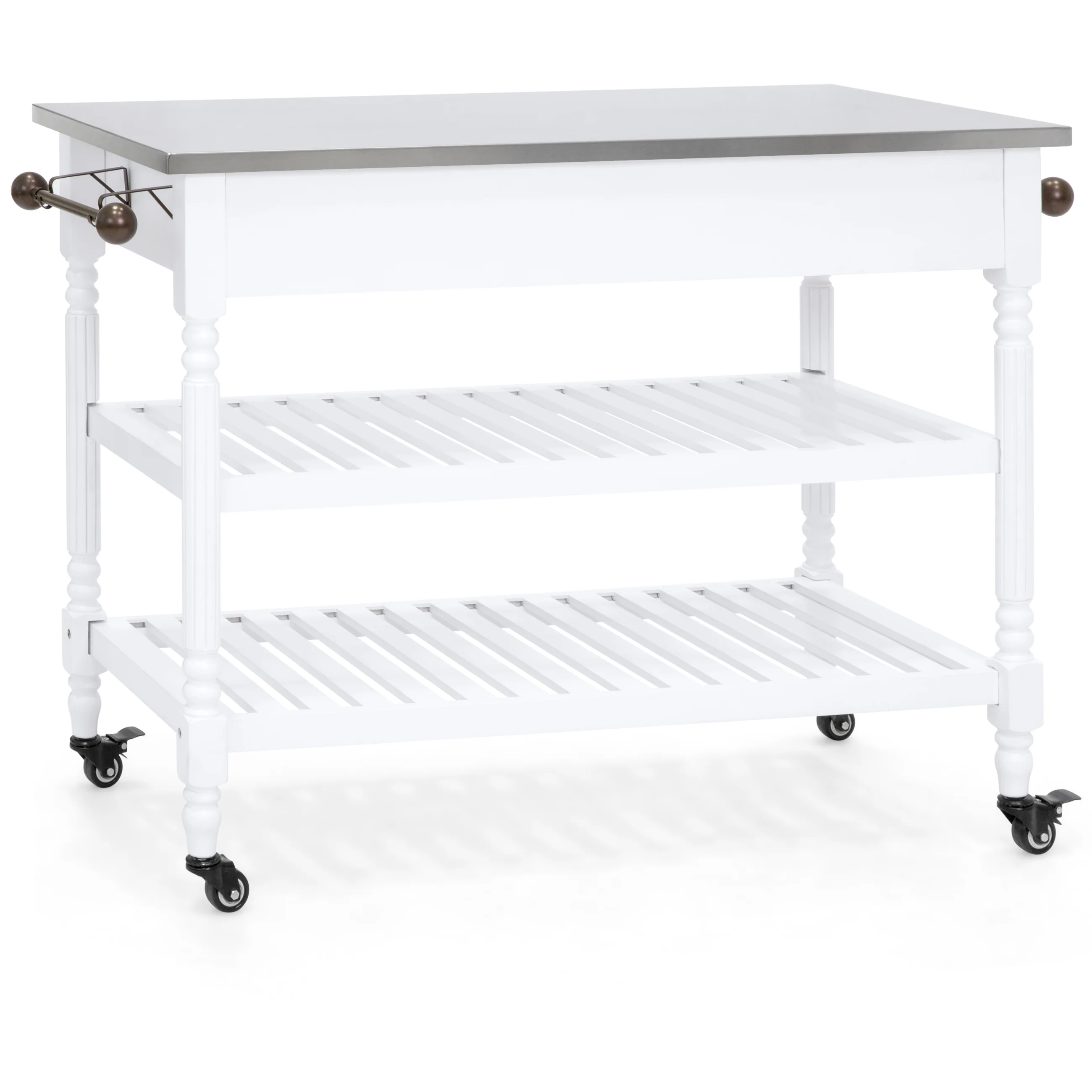 Utility cart's drawers are designed with plenty of storage space for surplus cooking utensils and kitchen supplies