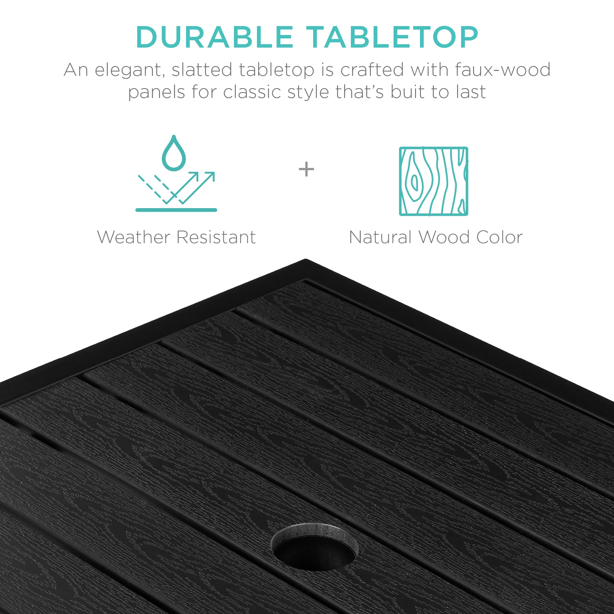 BUILT-IN UMBRELLA STAND: The 16-inch tube holds patio umbrellas with up to a 2-inch pole diameter in place, providing stability to protect you and the table from harmful UV rays