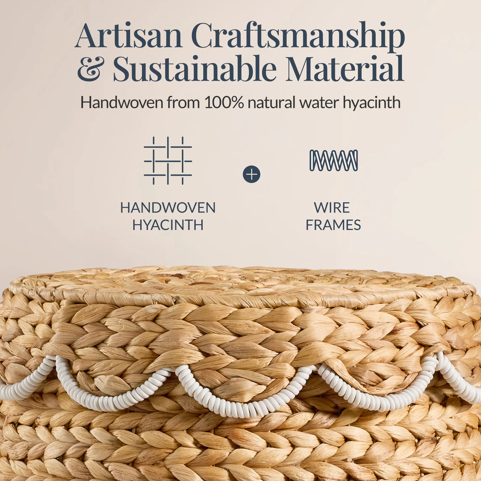 ARTISAN CRAFTSMANSHIP & SUSTAINABLE MATERIALS: Handwoven from 100% natural water hyacinth in Vietnam, each piece is unique with slight size and color variations, and a natural earthy scent that will fade within 24–72 hours